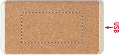 10 W trådlös laddning och 10 000 mAh power bank med korkhölje och ABS-vetehalmdetaljer. Stöder snabbladdningsteknik (20W). In/utgång: Typ-C.