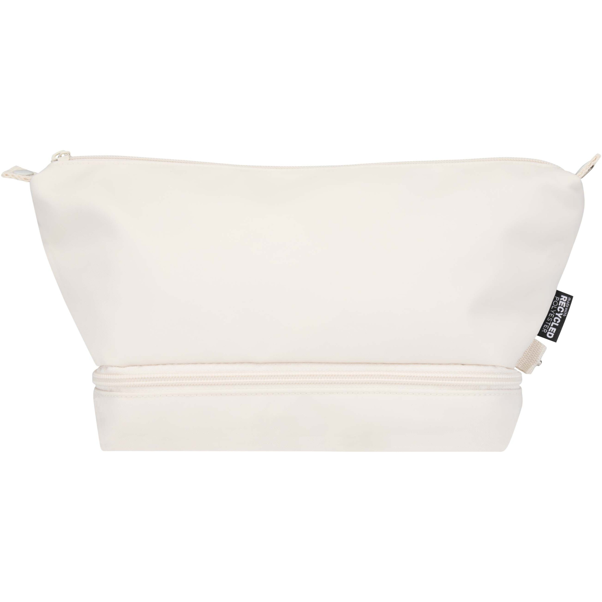 Necessären Trip Aware™ av återvunnet material är en kompakt, strukturerad väska som är utformad för att hålla personliga föremål prydligt organiserade under resan. Den är tillverkad av 290D twillpolyester med stickad baksida och fodrad med RPET 210D/PU, och har en ren form med praktiska fack. Huvudfacket har en invändig ficka med dragkedja för mindre föremål, medan bottenfacket med clamshell-öppning håller viktiga saker åtskilda för enklare åtkomst och förbättrad organisering. Alla väskor levereras dessutom med en Aware™-spårare. Denna innovativa funktion gör det möjligt för användare att spåra varans ursprung och resa via en QR-kod, vilket ökar transparensen i leveranskedjan och bidrar till en starkare koppling mellan produkten och dess produktionsprocess. Volymkapacitet: 6 liter.