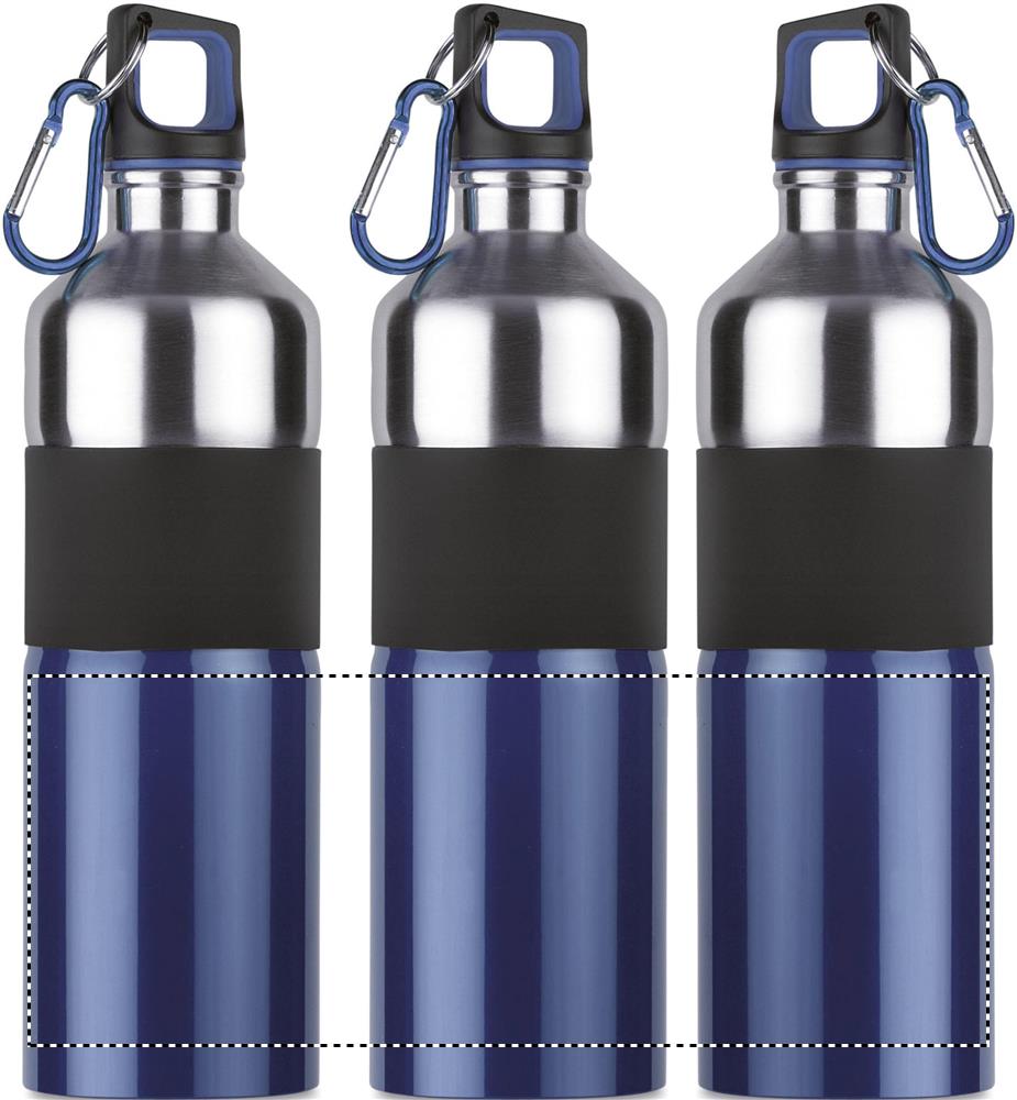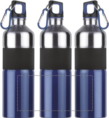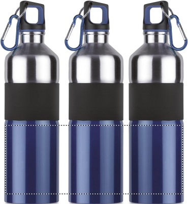 Tvåfärgad dricksflaska i rostfritt stål med gummi grepp och karbinhake. 750 ml. Läckagefritt.