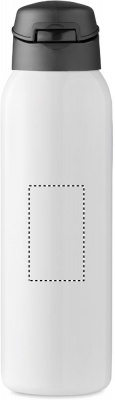 Dubbelväggig vakuumisolerad flaska i rostfritt stål med integrerat sugrör eller munstycke och lock med hängare. Kapacitet 580 ml.